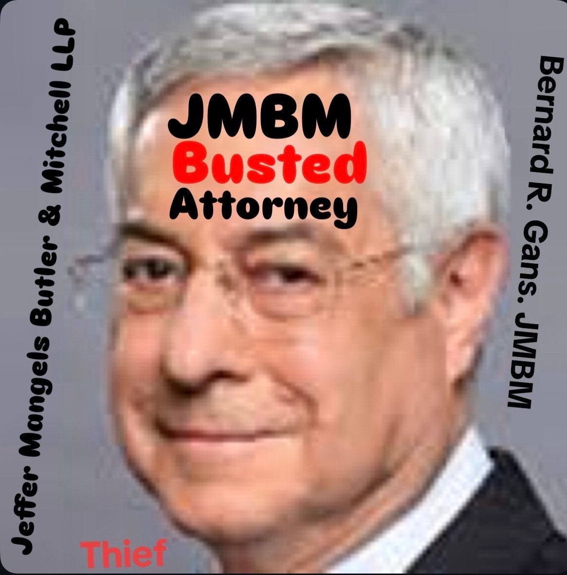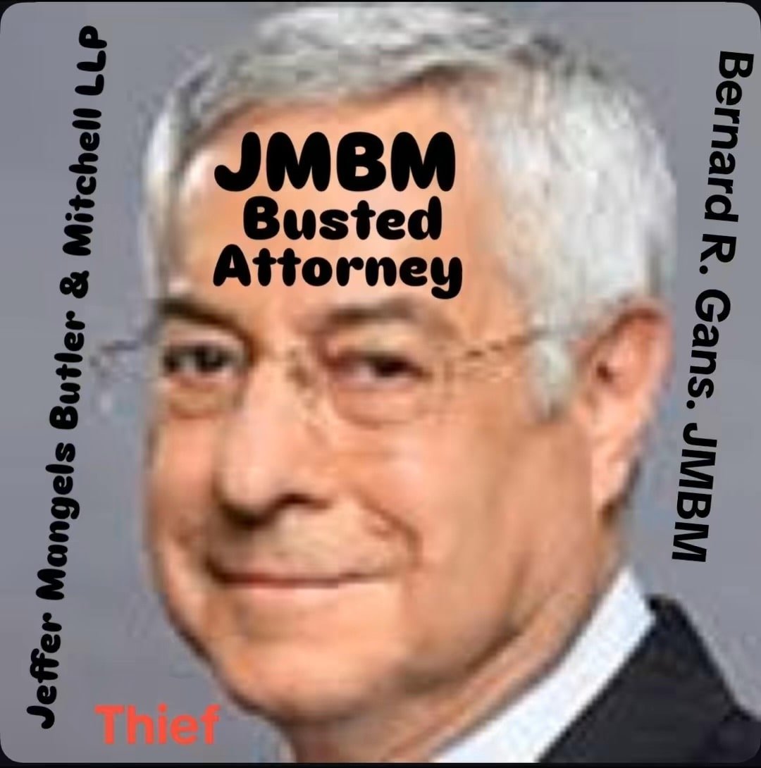 Suing JMBM partner $500,000,000,000.00 Busted criminal attorneys Jeffer Mangels Butler & Mitchell LLP lawyer Bernard Reginald Gans #57068 Bernard Gans Mina Sirkin law group JMBM killed my mom to get her fortune. |