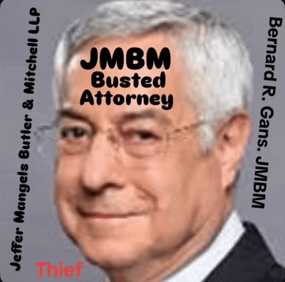 Suing JMBM partner $500,000,000,000.00 Busted criminal attorneys Jeffer Mangels Butler & Mitchell LLP lawyer Bernard Reginald Gans #57068 Bernard Gans Mina Sirkin law group JMBM killed my mom to get her fortune.,